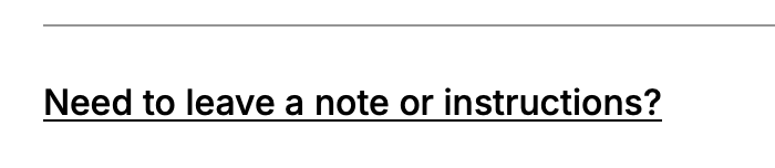PUT LAST NAME AND NUMBER IN NOTE SECTION AT CHECK OUT